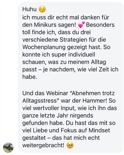 Zugriff auf meinen 90 minütigen Online Workshop „Abnehmen trotz Alltagsstress“